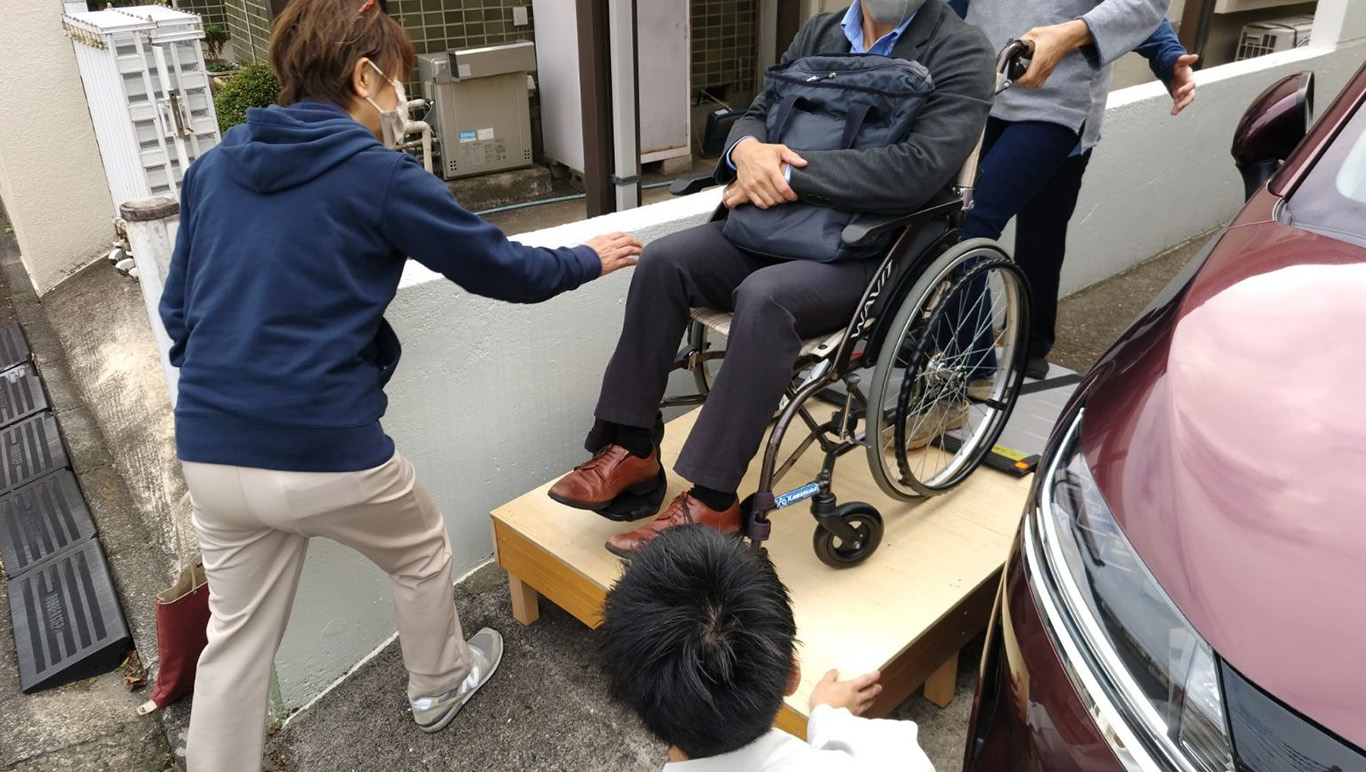 - ヘルパーさんが車いすを押してスロープを上がれるか